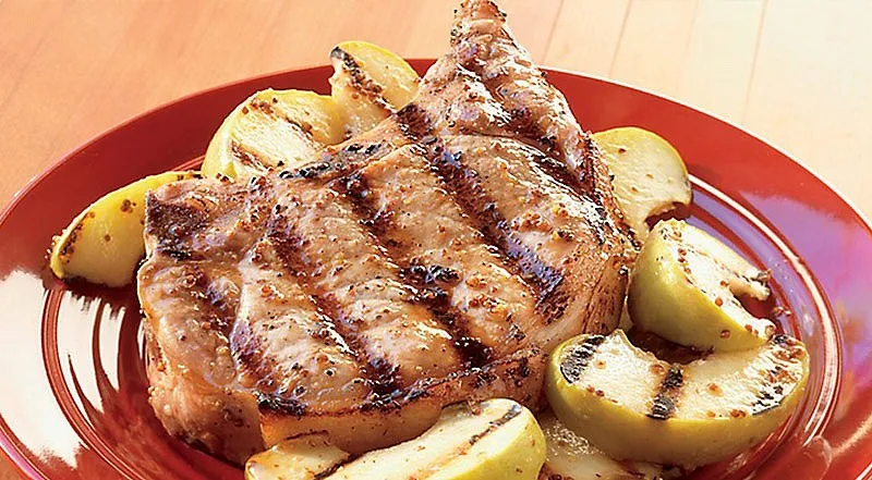 Свиные отбивные в горчичной глазури с яблоками