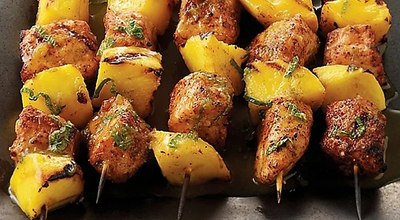 Жарить шашлычки при закрытой крышке 6-8 минут, перевернув пару раз;