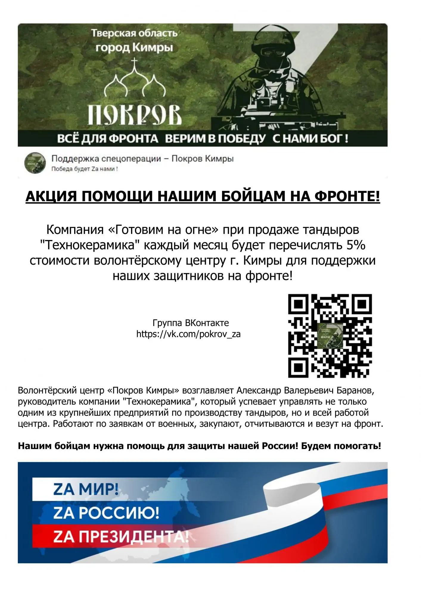Акция помощи нашим бойцам на фронте! Перечисляем 5% с продажи тандыров "Технокерамика"
